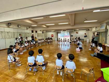 7・8月の誕生会を行いました! 公開日 2023/08/31 更新日 2023/08/31 きょうのようちえん 暑い夏生まれの友達の誕生会を行いました♪ おうちの人と玉入れを楽しみました(*'▽')来週は9月の誕生会です!9月生まれの友達もお楽しみに!! いいね(0)