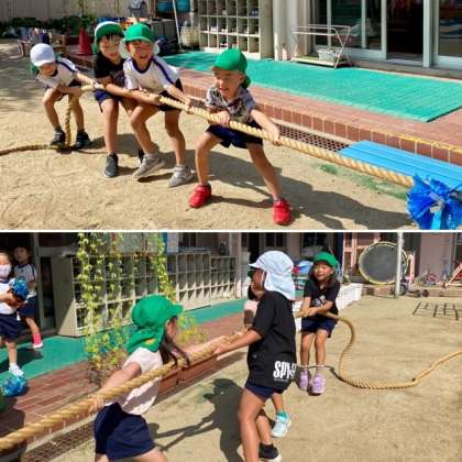 きのう… 公開日 2023/09/20 更新日 2023/09/20 きょうのようちえん 園庭で綱引きをしました(*'▽') 友達とかけ声に合わせて綱を引っ張ったり、並ぶ順番を考えたり…みんなで力いっぱい楽しみました! いいね(0)