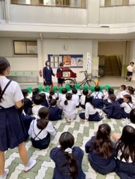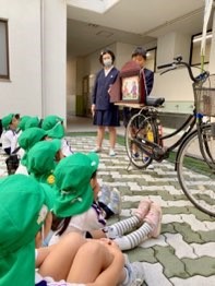 紙芝居屋さんにようこそ! 公開日 2023/11/08 更新日 2023/11/08 きょうのようちえん 三軒家西小学校の昼休みに、中庭で図書委員のお兄さん、お姉さんが行っている『紙芝居』の会にお誘いいただきました(*'▽')子どもたちは、図書委員さんのお話を真剣に見聞きしていました✨お話を上手にしてくれた小学生のお兄さん、お姉さんってすごいなあ!と、小学生への憧れの気持ちがまたふくらみました♪ いいね(0)