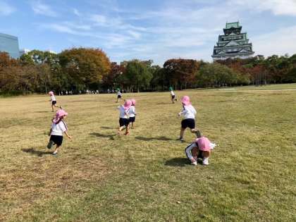 大阪城公園に行ってきました!【その2】 公開日 2023/11/09 更新日 2023/11/09 きょうのようちえん 4・3歳児は、西の丸庭園で鬼ごっこやバッタ探し、木の実拾いを楽しみました(*^^*)木の実拾いは、森の中の探検ごっこみたいで楽しかったね♪途中から、5歳児も合流!思い思いに遊びを楽しみました! いいね(0)