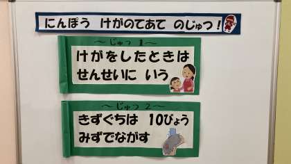 4歳児クラスで、けがの手当てに関する保健指導を行いました。