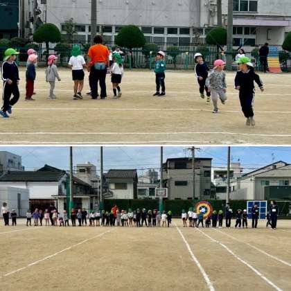 三軒家西小学校で 公開日 2023/11/15 更新日 2023/11/15 きょうのようちえん 三軒家西幼稚園、大浪保育所、大正ゆめの樹保育園の5歳児が集まり、みんなで一緒に遊びました♪小学校の校庭は広いですね!みんなでのびのびと体を動かして遊ぶことができました(*^^*) あと4か月と少しで、みんな同じ1年生!!地域の同じ年の友達への親しみをもち、安心して過ごせるようになってほしいと願っています✨ いいね(0)