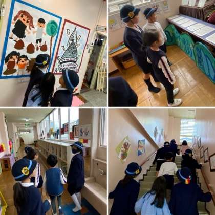 いらっしゃいませ〜!! 公開日 2023/12/05 更新日 2023/12/05 きょうのようちえん 三軒家西小学校の1年生の皆さんが、作品展を見に来てくれました!小学校の作品展を見せていただいた時と同じように、5歳児は同じペアのお兄さん、お姉さんと一緒に園内の作品を見て回りました(*^^*)1年生の皆さんが、たくさん話を聞いてくれてうれしかったですね♪また、遊びに来てください!またお邪魔します(*'▽') いいね(0)
