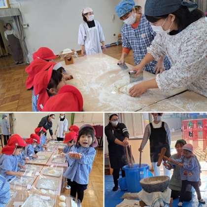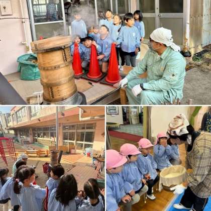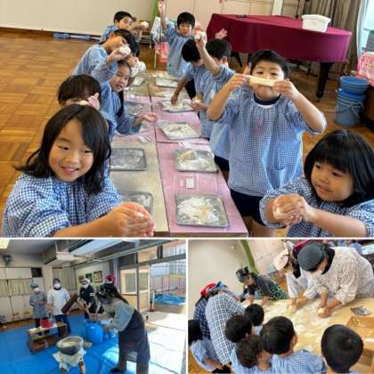 ぺったんぺったん、おもちつき!! 公開日 2023/12/10 更新日 2023/12/10 きょうのようちえん 今年も、もちつきの日がやってきました!朝からもち米を蒸すいい匂いに、子どもたちはもちつきへのやる気がみなぎっていました(^^)/PTAの方々も、子どもたちのためにお手伝いに来てくださいました!ありがとうございました✨ おもちの温かさや柔らかさを感じて、みんなでほっこりいい気持ち💖 かわいい鏡餅ができあがりました♪ いいね(0)
