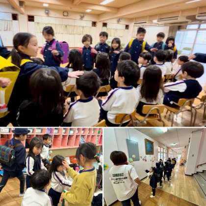 修了式ごっこや三軒家西小学校で遊ぶ時間、園内で過ごす中で、いろいろな友達への『ありがとう』の気持ちが大きく膨らんでいます♪