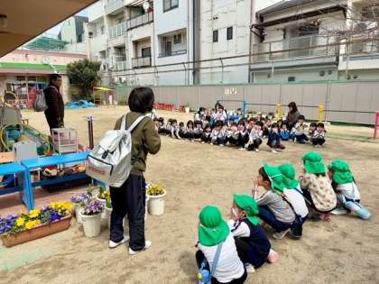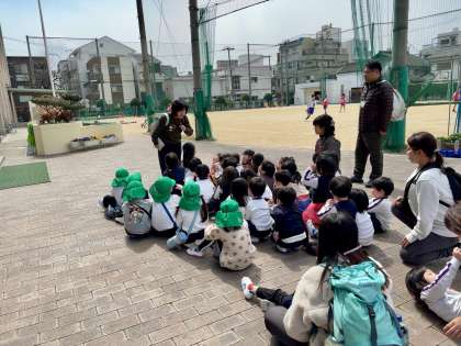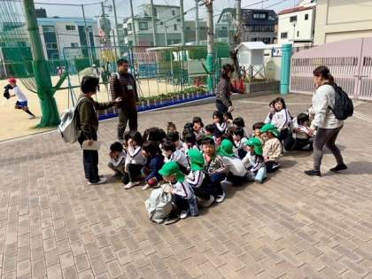 3・4歳児と預かり保育に参加している5歳児で最後の避難訓練を行いました!今回は、2階の職員室が火事になった場合を想定して、1次避難場所の園庭から、2次避難場所の三軒家西小学校に避難しました🔥