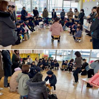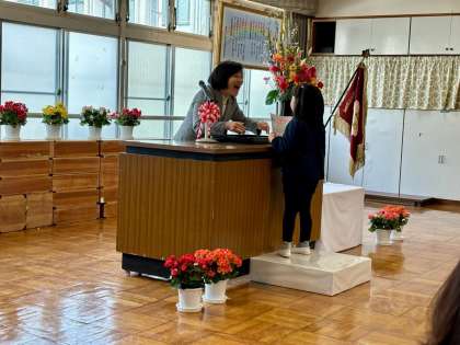 第3学期の終業式を4・3歳児全員で迎えました♪ 公開日 2024/03/25 更新日 2024/03/25 きょうのようちえん 4・3歳児、31名全員が参加した終業式! 5歳児が保育修了式で保育証書をいただいたように、園長先生から進級証書をいただきました(*'▽')みんなとてもうれしくて、にこにこが止まりません☆うれしいですね! 4月からもひとつ大きい組で、園生活をのびのびと楽しみましょう! いいね(0)