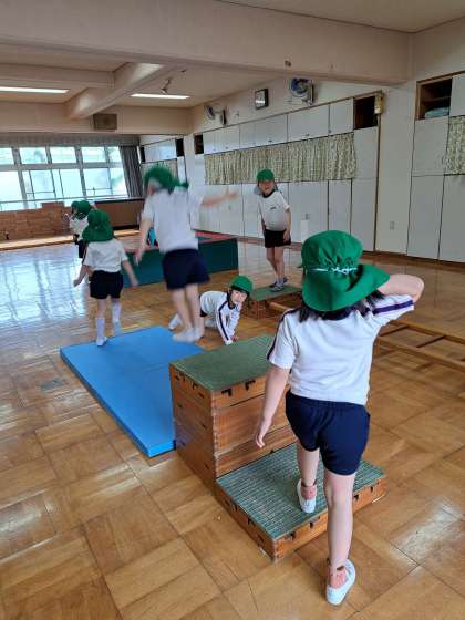 昨年度に引き続き、存分に体を動かして遊べるよういろいろな環境を工夫していきたいと思います。台に登ったり、ジャンプしたりトンネルをくぐったり、鉄棒にぶらさがったり♪今日はサーキットやダンスで遊びました(*'▽')