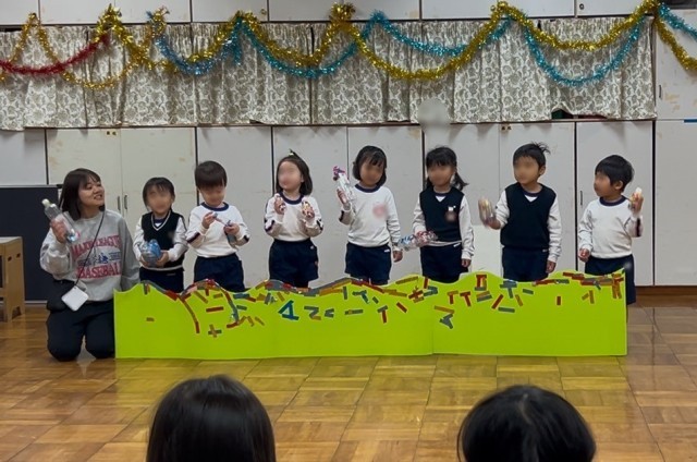 お楽しみ会でした!(^^)! 公開日 2025/12/19 更新日 2025/12/19 きょうのようちえん 今日のお楽しみ会では、ダンス、手作り楽器遊び、パネルシアターなど、それぞれのクラスで遊んでいることを見せ合いました(^^♪楽しかったですね!大正区PTA協議会の方々も遊びに来てくださり、絵本をプレゼントしてくださいました!!!いつも子どもたちのために、ありがとうございます(*'▽') いいね(0)
