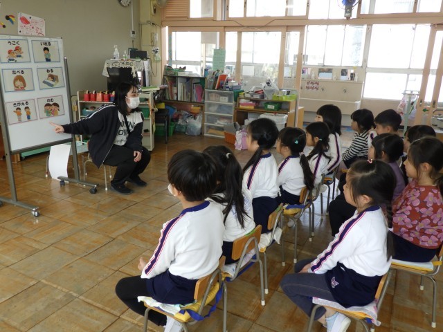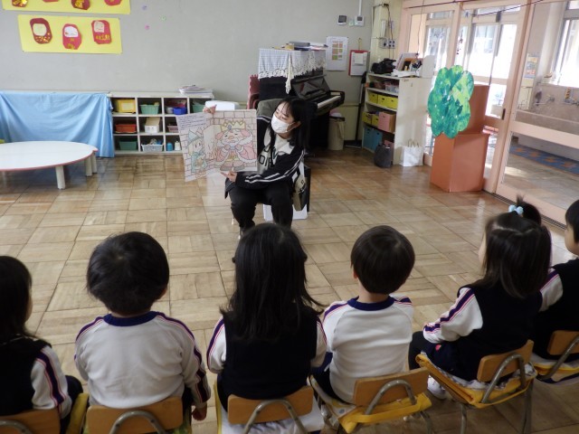 「寒い日の過ごし方」についての保健指導を行いました。手作り絵本「さむがり屋の王様」を通して、体を動かすとポカポカ温かくなることを伝えました。その後、実際に体を動かし、温かくなる感覚を体験したり、寒い日の過ごし方の約束をクラスごとに確認したりしました。