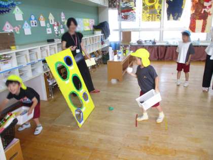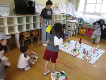 6月19日 おまつりごっこ1 公開日 2024/06/30 更新日 2024/06/30 幼稚園の様子 5歳児はスーパーボールすくい、ヨーヨーつりなどの遊びに加え、話し合いを経て、ボール投げ遊び、的あて、輪投げ、魚釣りの遊びを考えてくれました。遊びに必要なものをつくったり、遊びのルールを考えたりする中で、年下の3.4歳児、未就園児の友達が遊ぶことを思いやる気持ちも生まれていました。 いいね(0)