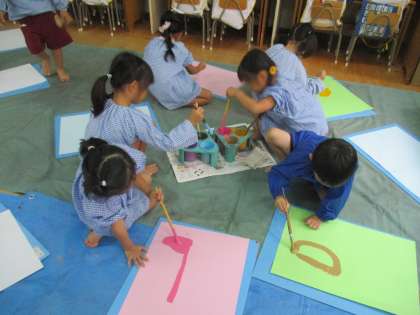 園外保育(神戸どうぶつ王国) その後 公開日 2024/09/16 更新日 2024/09/16 幼稚園の様子 後日、園外保育の思い出を振り返りながら、絵の具を使ってのびのびとかいて表現したり、動物のイメージで体を動かしたりして遊びがつながっています。 いいね(0)