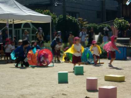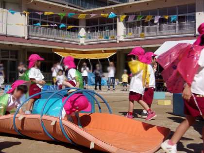 10月12日 運動会(3歳児) 公開日 2024/11/30 更新日 2024/11/30 幼稚園の様子 初めての運動会。神戸どうぶつ王国で見たペンギンになって遊んだり、かけっこしたり、大好きな乗り物の運動遊具に乗ったりしました。大勢の人の前に立つことは緊張します。そんな中でも大好きな先生と一緒に自分なりに参加しようとする姿、伸び伸びと体を動かす姿は、集団生活を存分に楽しみ、安心感をもっているからこその姿です。みんなよく頑張りました!! いいね(0)