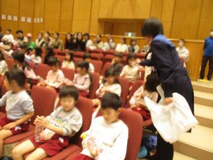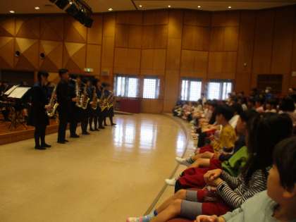11月18日 夕陽丘高校吹奏楽部音楽鑑賞会1 公開日 2024/12/06 更新日 2024/12/06 幼稚園の様子 大阪府立夕陽丘高等学校の吹奏楽部のみなさんからの招待で、子どもたちと保護者で吹奏楽部の演奏を聴かせていただきました。 幼稚園の子どもたちに合わせた選曲や演出をしてくださったり、手づくり楽器のプレゼントを貰ったりと音楽に親しむ機会となりました。さらに、演奏する楽器の紹介もしてくださり、子どもたちは興味津々で見入っていました。楽器遊びにつながるのではないでしょうか。 いいね(0)