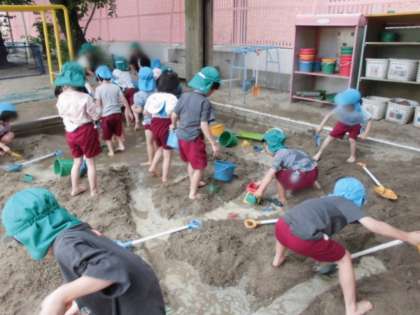 泥遊び(5歳児) 公開日 2025/09/21 更新日 2025/09/21 幼稚園の様子 砂場では全身を使って泥遊びを楽しんでいました。 友達と掘って砂場いっぱいの水路をつくって遊んだり、樋をつなげて水を流して遊ぶ5歳児。 いいね(0)