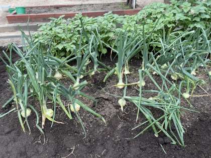 子どもたちが植えたタマネギがいつの間にかこんなに大きくなっていました!