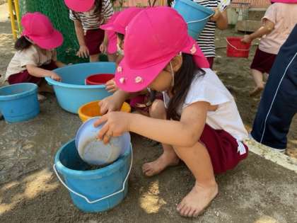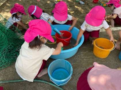 砂場で… 公開日 2022/06/02 更新日 2022/06/02 幼稚園の様子 すみれ組さんが砂場で遊んでいます。今日もとっても暑いですが砂場は日陰になっていますし、水で遊べるし、裸足になってとっても気持ちよさそうです。 いいね(0)