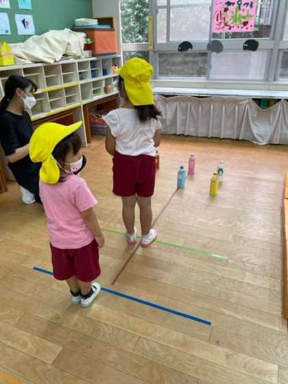 教育実習生がかわいい輪投げの的を作ってくれました。