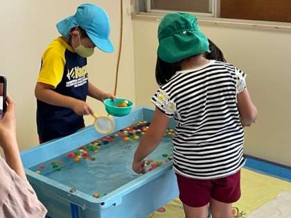 ヨーヨーつりも人気でした。企画委員さんの準備のおかげで楽しむことができました。今日は園児や弟妹たち、一つずつ持ち帰ります。残念ながら今日欠席した園児にも後日持ち帰ることができるようにしておくので楽しみにしてくださいね。