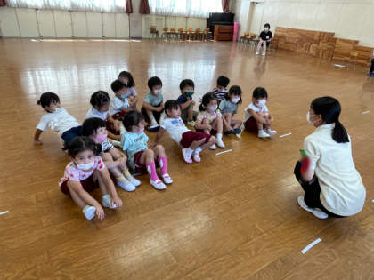 教育実習生の部分実習、遊戯室で表現遊びをしていました。お話を聞いたり、ピアノの音を聴いて動いたりとっても楽しそうにしていました。お友達と一緒に遊ぶ楽しさを存分に味わっています。