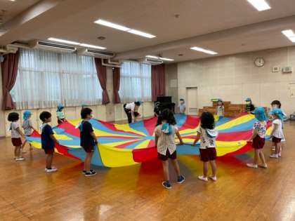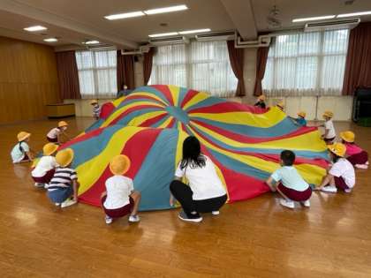 パラバルーン 公開日 2022/09/01 更新日 2022/09/01 幼稚園の様子 年長組の子どもたちが遊戯室でパラバルーンで遊びました。合図を聞きながらいろいろな動きを楽しんでいます。 いいね(0)