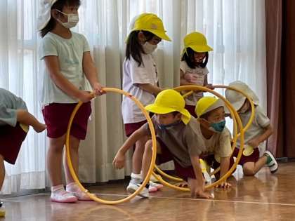 フープで遊ぶの楽しそう 公開日 2022/09/12 更新日 2022/09/12 幼稚園の様子 4歳児きく組さんがフープで遊んでいます。転がしたりくぐったり…いろんなことができます。お友達と一緒に楽しんでいます。 いいね(0)