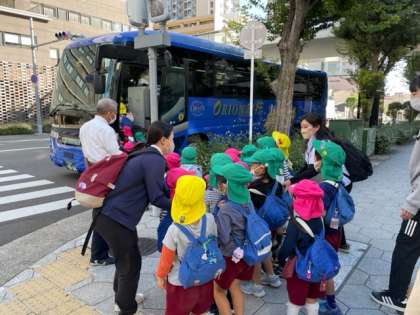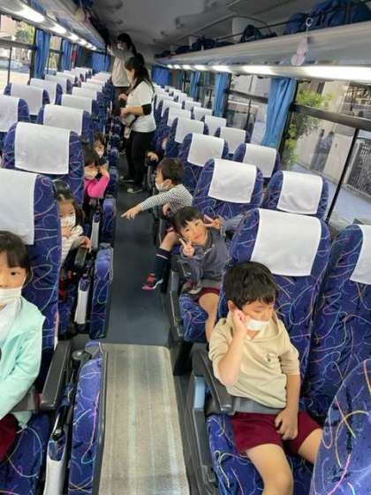 今日はバス遠足です。とってもいいお天気です。神戸どうぶつ王国に出発です。