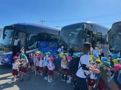 園外保育 公開日 2022/10/31 更新日 2022/10/31 幼稚園の様子 バスの中では先生がクイズを出してくれました。運動会で使ったパラバルーンの曲をかけると、みんなノリノリでパラバルーンを持つ動きをしていました。バスから見える景色もいいお天気なのでとっても綺麗でした。 いいね(0)