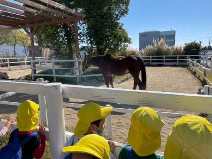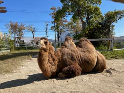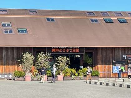 神戸どうぶつ王国到着です。馬やラクダいろんな動物がすぐ近くにいます。コスモスのお花畑も綺麗です。