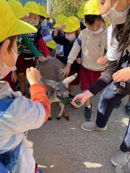 アシカ、カメ、カンガルー、間近で見たり手で触れたり、動物たちを身近に感じて大喜びしています。