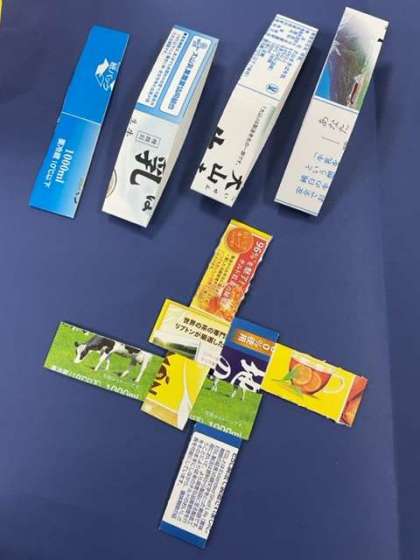 保護者の皆様、明日お待ちしています。短い時間ですが、子どもたちの作品をご覧いただき楽しんでお過ごしください。さて、「つくってあそぼうコーナー」ではこのような材料を用意しています。組み合わせてブーメランを作り、飛ばして遊んでくださいね。