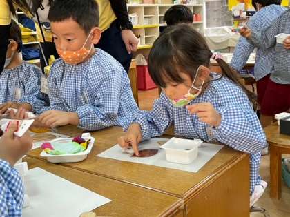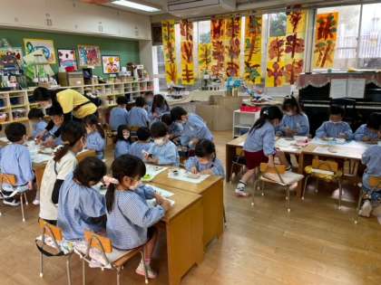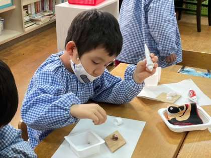 真剣な眼差し 公開日 2022/11/24 更新日 2022/11/24 幼稚園の様子 ?4歳児きく組のお部屋では、自然物を使った製作遊びをしています。 小さなものを手でつまみボンドをつけて接着しています。真剣な眼差しに子どもたちの意欲が感じられます。 いいね(0)