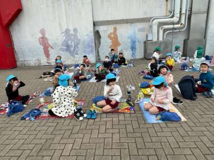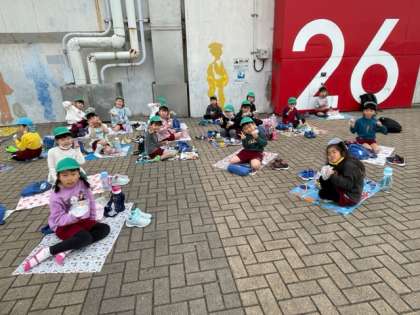 おにぎりタイムです。年長さん 幼稚園最後の遠足です。楽しい1日になりました。