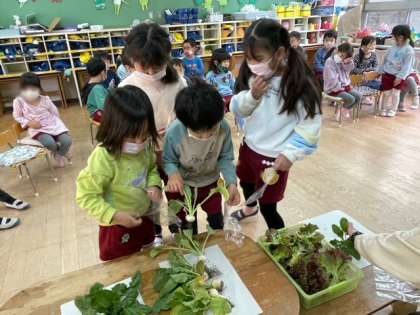 野菜がこんなに! 公開日 2023/02/21 更新日 2023/02/21 幼稚園の様子 寒い冬の間も野菜がこんなふうに元気に美味しそうに育ちました。4歳児きく組の子どもたちが収穫し家に持ち帰ります。 いいね(0)
