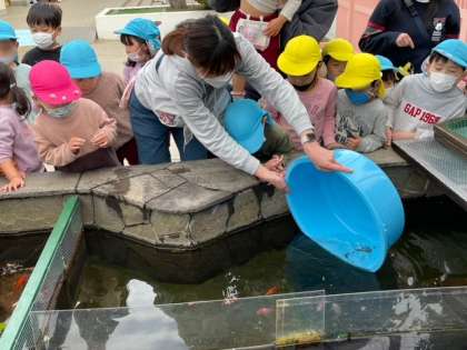 金魚たちのお引越し 公開日 2023/03/02 更新日 2023/03/02 幼稚園の様子 冬の間、園舎内の廊下で飼育していた金魚たちを池に戻しました。 子どもたちから「おかえり〜」という声があがりました。小さな生き物に心を寄せています。 いいね(0)