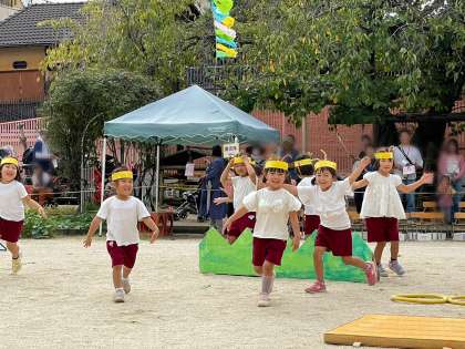 合図や音楽を聞いて遊んだり、友達と一緒にする楽しさを感じたりしていました。大勢のお客さんの前でもいつも通り楽しんでいる姿が見られたのは、日々先生と友達と考えたり、遊んだりしてきたからこその自信のあらわれでしょう。