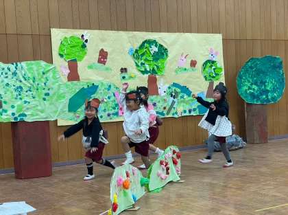 先生の話を聞く、自分なりに表現する、友達の姿を見守るなど…集団生活の中で育まれてきたことが詰まった発表会となりました。この基礎があるからこそ、その上に4歳児、5歳児と様々な経験を積み重ねていくことができますね。これからが楽しみです!