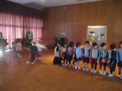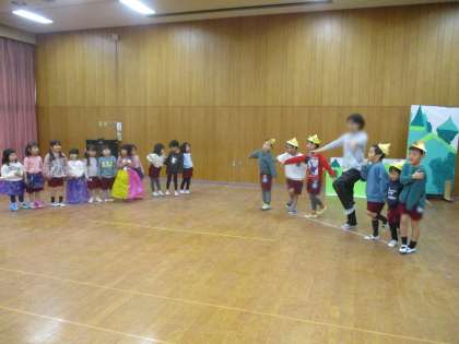 3.4歳児は、5歳児の姿を見よう見まねしながら表現することを一緒に楽しんでいました。
