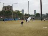 たこあげを楽しみにしていた子どもたち。 風を受けて高く揚げるたこを見て喜んだり、...