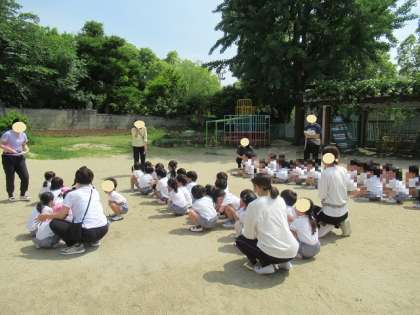 避難訓練(火災) 公開日 2024/05/26 更新日 2024/05/26 幼稚園日記 今年度初めての避難訓練(火災)を行いました。ベルが鳴ったらすぐに先生の近くに集まり、放送を聞いて、ハンカチで鼻と口を押えて、園庭に避難しました。誰一人泣かず、先生にしっかりついていっていました。今後も地震、火災、防犯などの訓練を行います。非常時に冷静に避難できるように伝えていきたいと思います。 いいね(0)
