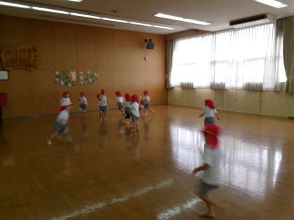 雨で園庭に出られない日は、リズム室で思いきり体を動かしています。