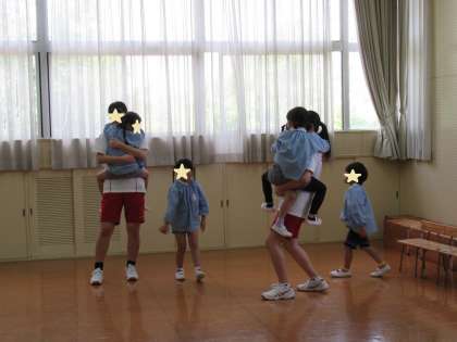 「こんにちは」「よろしくね」と、手をつないでなかよし遊びをすると、もう心がほぐれ、お互いに笑顔いっぱいになりました。