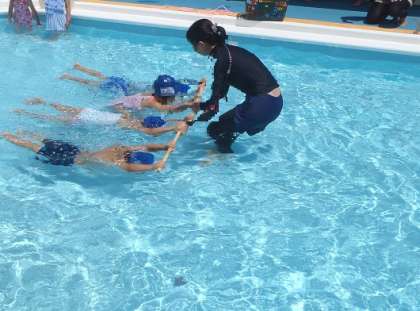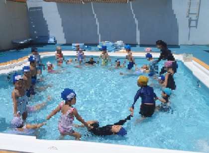 プール遊び(5歳児) 公開日 2024/07/08 更新日 2024/07/08 幼稚園日記 とても暑い日が続いており、水が心地よいです。 友達と手をつないでメリーゴーランドをしたり、棒につかまって泳いだり…、幼稚園で、友達と一緒だからこそできる遊びに取り組み、存分に楽しんでいます。 遊びの中で浮く感覚や水流を感じ、全身で水の心地よさを感じられるように保育を進めています。 いいね(0)