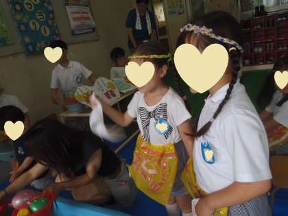 前日にPTA保護者の方にしてもらって楽しかったことや嬉しかったこと、教えてもらったことを、この日は張り切って、小さいお友達にしてあげていました。