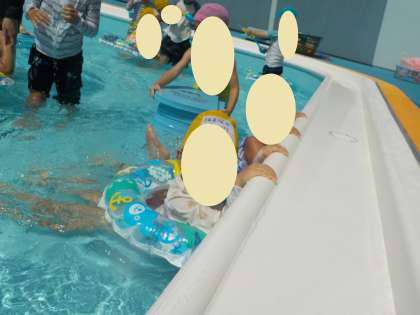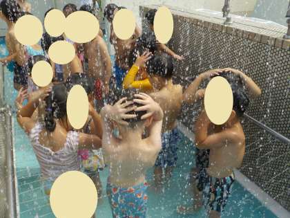 はじめは、シャワーや水を怖がっていた子どもも、先生や友達と一緒に遊びを楽しんでいくうちに、段々と水に親しみ、楽しめるようになりました!