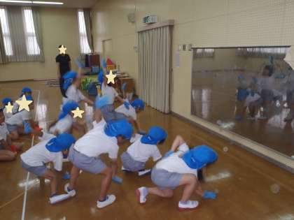 自分の体の動きをイメージをすることができたのか、動きが大きくなり、だんだん揃ってきました。声や動きが揃うとさらにやる気がでてきたようです!