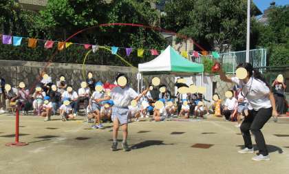 次は、毎日、子どもたちが一生懸命取り組んだ「なわとび」「フープ」「鉄棒」の好きな遊び。今日はより気合いが入り、どの選手も技が決まりかっこよかったです!!
