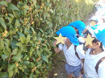 バッタがいたり、お月見でお供えしたススキがたくさん生えていたり、キンモクセイの香りを楽しんだり、秋の自然に親しむことができた1日でした。