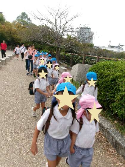 昨日は、大阪城公園に行きました。気候もよく、たくさんの人で賑わっていました。5歳児が優しく3歳児の手をひき、リードしてくれる姿が頼もしかったです。電車のホームや階段でも、5歳児が外側を歩き、3歳児を守ってくれていました!