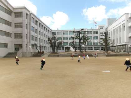 今日は4歳児が、真田山小学校へたこあげにいきました。